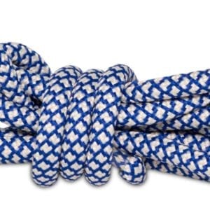Our blue and white round rope laces are the perfect complement to your sneakers. Use them as a replacement for old, dirty laces or simply as a way to punch up a pair of your favorite shoes and make them unique. These laces come in 1 size, 50 inches in length, which is a perfect fit for shoes with five, six or seven eyelets.