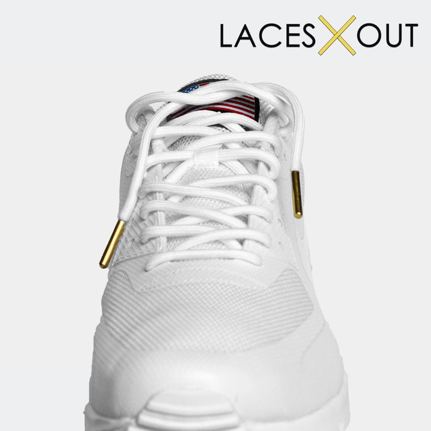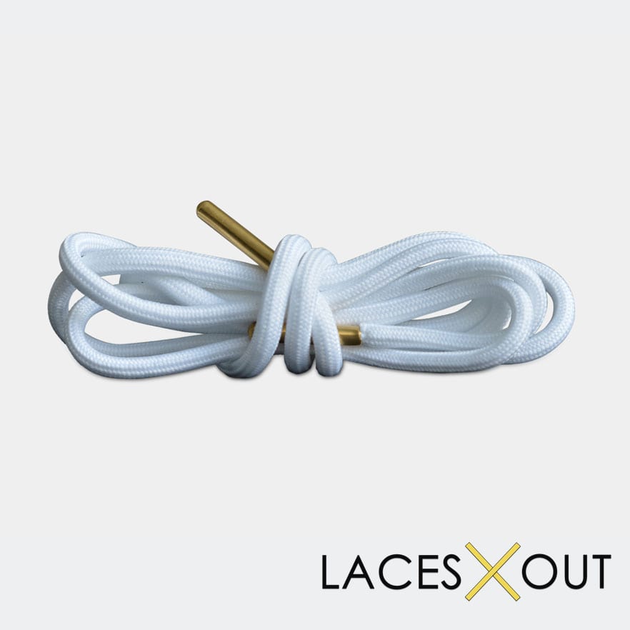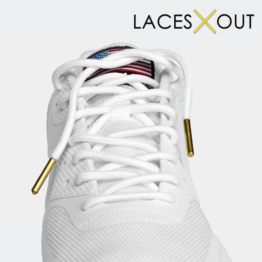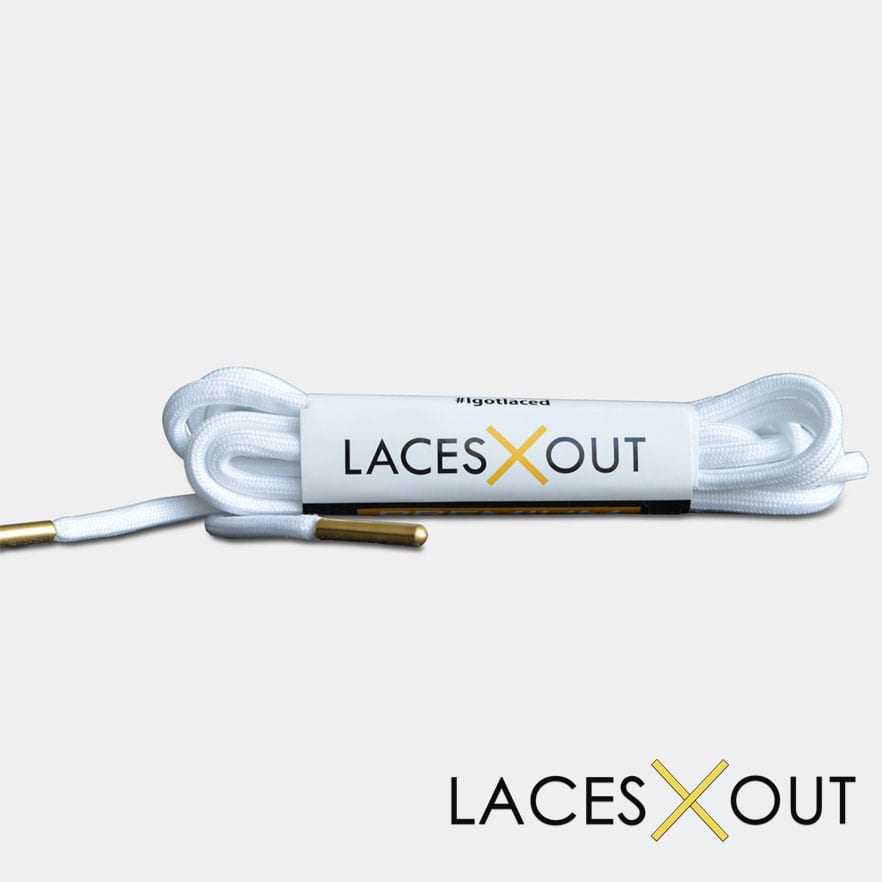 Without a doubt these gold tipped laces are a great way to kick up your favorite pair of sneakers. These white, gold aglet laces come in 50″ length, a perfect fit for any sneakers with 5, 6 or 7 eyelets. Pair these and swap with your favorite pair of Air Maxes, Jordans and other sneaker brand shoelaces.